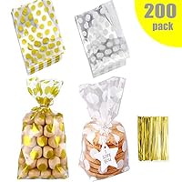 22 | 200 Pieces Self Adhesive Treat Bag Cookie Bags Party Favor Bag White Polka Dot Chocolate Candy Gift Bags by LiyuanQ |