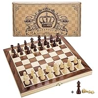 Amerous 12" x 12" Magnetic Wooden Chess Set for Adults and Kids, 2 Bonus Extra Queens, Folding Board with Storage Slots, Handmade Chess Pieces, Portable Travel Chess Board Game Sets, Gift Packed Box |