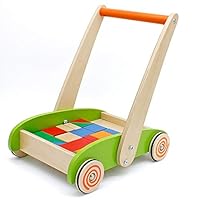 90 | london-kate Deluxe Children's Roll Cart with Blocks - Wooden Push and Pull Toy Activity Baby Walker | ![]() |