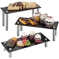 98 | ZAFUU 3 Tier Rectangle Tempered Glass Retail Display Stand 6 x 14" for Cupcakes, Dessert, Bags, Perfume - Set of 3 Glass Display Raisers. | ![]() |
