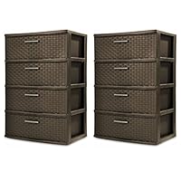 STERILITE 4-Drawer Wide Weave Tower, Espresso Frame & Drawers w/Driftwood Handles, 2-Pack |