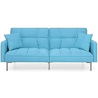 Best Choice Products Linen Upholstered Tufted Convertible Splitback Sleeper Futon with Pillows |