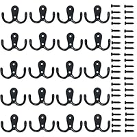 68 | 20 Pieces Double Prong Robe Hook Rustic Hooks Retro Cloth Hanger Coat Hanger Wall Mounted Hook with 44 Pieces Screws (Black color) by Mooerca |
