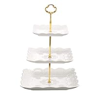 68 | 3-Tier Square Ceramic Cupcake Stand - Pure White Elegant Embossed Porcelain Dessert Display Cake Stand - For Birthday Weddings Tea Party White by Eglaf | ![]() |
