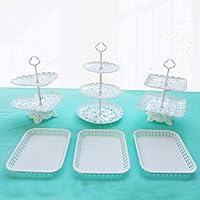 66 | Dessert Stand Set of 6 Pieces Includes 3 Tier 2 Tiers Square/Heart/Round Cupcake Holder Rectangular Plate Tray for Wedding Birthday Party Fruits Desserts Candy Bar Display White (A - Set of 6) by Agyvvt |