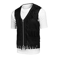 COOFANDY Mens Fringe Vest Hippie Costume Casual Western V Neck Zipper Suede Leather Waistcoat |