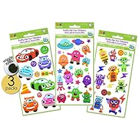 91 | Toddler Stickers Robot, Martians, Car, Vehicles Stickers, Puffy Stickers for Toddlers with Wiggle Eyes - 3D Stickers for Kids, Pop-up Stickers for Boys & Girls, Dimensional Stickers 3 Sticker Packs by AoneFun |