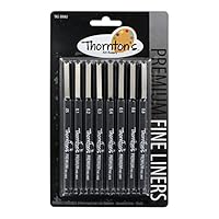 Thornton's Art Supply Distinct Fine Line Sketch Drawing Pens, Black Ink, Assorted Sizes, Pack of 8 |