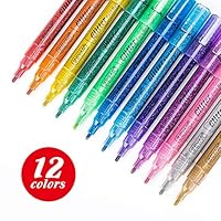 ZEYAR Glitter Paint Pens, Water Based, Fine Point, Set of 12, Multiple Colors, Great for Gift Card, Poster, Album, Christmas Card and more |