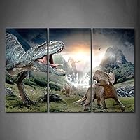 32 | First Wall Art - Dinosaur Openmouth with Cub Wall Art Painting Pictures Print On Canvas Animal The Picture for Home Modern Decoration by Firstwallart |