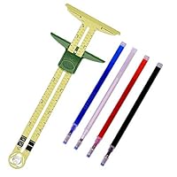 58 WXJ13 T-Shaped Sliding Gauge Sewing Measuring with 4 Colors Heat Erase Pens for Fabric, 5-in-1 Sewing Ruler Tool for Marking Button Holes, Seam Allowance Gauge