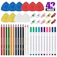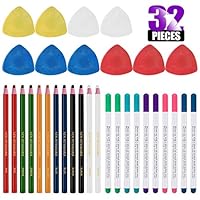 94 Rustark 32 Pcs Tailoring Marker Tools Including 10 Pcs Triangle Tailor's Fabric Marker Chalk 10 Pcs Disappearing Ink Fabric Marker Pen and 12 Pcs Sewing Marking Pencil for Quilting Sewing Dressmaking