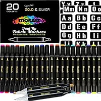 55 Large Set Dual Tip Fabric Markers with Gold and Silver 20 Colors Fine and Chisel Tip Permanent Ink Art Marker for Fabric Painting Writing on Cloth Laundry Clothes Canvas Bags Paint T-Shirts Shoes by Mosaiz