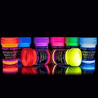 26 neon nights 8 x UV Fabric Paint Set Fluorescent for Clothing - Vibrant Ultraviolet Textile Black Light Paint for Projects, Glow Parties, and Events - Set of 8 Bright Colors - 0.7 fl oz / 20ml Each