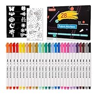 22 28 Colors Fabric Markers, Shuttle Art Fabric Markers Permanent Markers for T-Shirts Clothes Sneakers Jeans with 11 Stencils 1 Fabric Sheet,Permanent Fabric Pens for Kids Adult Painting Writing
