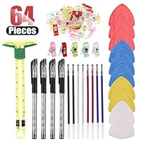 65 Swpeet 43Pcs Sewing Tools Kit, 10Pcs Professional Tailor's Chalk and 12Pcs Sewing Mark Pencil with 12Pcs 5 Color Disappearing Erasable Ink Fabric Marker Pen and 10Pcs Plastic Clips for Sewing Marking
