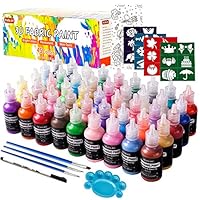 38 Fabric Paint, 45 Colors 3D Fabric Permanent Paint with 3 Brushes 1 Palette 1 Fabric Pen 1 Fabric sheet 4 Stencils, Glow in The Dark, Glitter, Metallic Colors for Textile Fabric T-Shirt Glass Wood by Shuttle Art