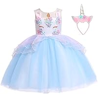 | 91 | Flower Girls Unicorn Costume Pageant Princess Party Dress with Headband for Girls 2-12 Years by BanKids |