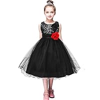 YMING Girls Flower Sequin Princess Dress Sleeveless Tutu Tulle Birthday Party Dress |