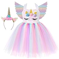 | 43 | Pastel Unicorn Tutu Dress for Girls Kids Birthday Party Unicorn Costume Outfit with Headband Size 2T 3T 4T 5T 6T 7T 8T by HJTT |