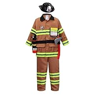 yolsun Tan Fireman Costume for Kids, Boys' and Girls' Firefighter Dress up (7 pcs) |