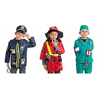 68 | Set of 3 Rescue Costumes Fireman Police & Doctor with Hats & Over 15 Accessories by IQ Toys |