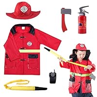 yolsun Fireman Role Play Costume for Kids, Boys' and Girls' Firefighter Dress up and Play Set (7 pcs) |