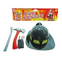 Mozlly Fire Fighter Fireman Rescue Complete Chief Costume Accessories Tools Kit, Includes Helmet Hat Toy Axe Pry Bar Badge & More - Kids Halloween Dress Up for Boys & Girls, Colors May Vary (5pc Set) |
