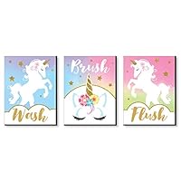 Big Dot of Happiness Rainbow Unicorn - Kids Bathroom Rules Wall Art - 7.5 x 10 inches - Set of 3 Signs - Wash, Brush, Flush |