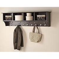 57 | Rustic Coat Rack Wall Mounted Shelf with Hooks & Baskets, Entryway Organizer Wall Shelf with 5 Coat Hooks and Cubbies, Solid Wooden Shelf with Hooks - Hang Coats, Towels, Hats, Keys or Coffee Mugs! by HBCY Creations |