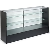 86 | 6-feet-Wide Free-Standing Glass Display Case with Height-Adjustable Shelves and Sliding Door - Anodized Aluminum Extrusions with Black Melamine Panels by Displays2go |