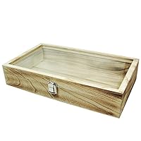 Mooca Large Natural Wood Tempered Glass Top Lid Metal Clip Jewelry Display Case, 14.75X8.25X2.1" |