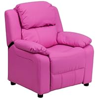 Flash Furniture Deluxe Heavily Padded Contemporary Beige Vinyl Kids Recliner with Storage Arms |