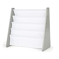 KidKraft Wooden Sling Bookcase - Gray & White- Sturdy Canvas Fabric, Chevron Pattern, Kids Bookshelf, Young Reader Support |