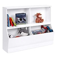 Best Choice Products Multipurpose 2-Shelf & 2-Cubby Kids Wooden Storage Book Toy Organizer Cabinet w/Wall Mount |