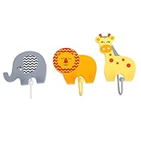 93 | Handcrafted Wooden Safari Jungle Animals Childrens Coat Hook Hangers Wall Decor; Elephant, Lion & Giraffe, Room Decor for Kids, Girls, Boys by Tinkie Toys |