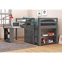 Donco Kids Low Loft Bed with Desk, Twin, Dark Grey |