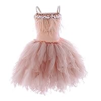OBEEII Little Girl Swan Princess Feather Fringes Tutu Dress Pageant Party Wedding Dance Formal Birthday Short Tiered Gown |