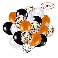 69 | 80 PCS Christmas Orange Black and White Balloons Pack Prefilled With Red Black and Gold Confetti For Christmas Birthday Party Decorations by Fine Clutter |