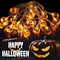 Soosi Halloween Pumpkin String Lights, 16.4 Ft 40 LED Pumpkin Lights Jack-O-Lantern Battery Operated Fairy Lights 2 Modes Steady/Flickering Lights Halloween Decorations for Outdoor Patio, Tree, Party |
