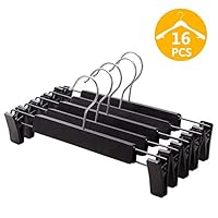 80 VEHHE Pants Hangers Skirt Hangers, 16 Pack Black Plastic Dress Trousers Pant Hanger with Non-Slip Big Clips and 360 Rotatable Hook (Black)