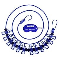 98 HAWATOUR Portable Travel Elastic Clothesline Adjustable Clothesline with 12pcs Clothespins for Outdoor and Indoor Use (Blue)