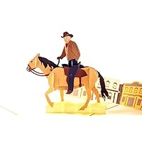 iGifts And Cards Inspirational Cowboy 3D Pop Up Greeting Card - All Occasion, Happy Birthday, Friendship, Congratulations, Just Because, Half-Fold, Horse, Gift, Unique, Motivation, Saloon, Wow Bronco |