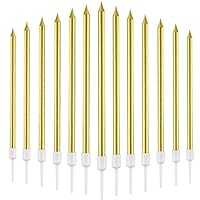 12 | 24 Count Birthday Party Long Thin Cake Candles Metallic Birthday Candles in Holders for Birthday Cakes Decorations , Champagne Gold by Lucky Party by KALEFO |