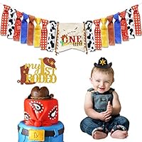 90 | Cowboy First Birthday Party Decorations Wild West Cowboy Highchair Banner My 1st Rodeo Cake Topper Cowboy Birthday Hat for Western Themed Cowboy Cowgirl Baby Birthday Party Supplies by Vansolinne |