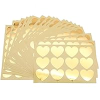 JETEHO 20 Sheet 240PCS Gold Heart Shape Foil Blank Certificate Self-Adhesive Sealing Stickers for Invitations, Certification, Graduation, Stationery, Paperwork,Corporate Seals |