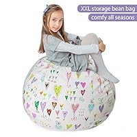 65 | Stuffed Animal Storage Bean Bag - Perfect Kids Toy Storage Durable Soft 100% Cotton Fabric Machine Washable Tiday Away Quickly Space Saving Stuffable Storage for Anything Soft by BOF Creations |
