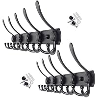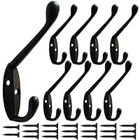 81 | Dual Coat Hook/Hat Hooks Hardware,7-10 Pack Heavy Duty Metal Double Coat Hanger - Wall Mounted (Two Types of Screws Included),Wall Hooks for Scarf, Bag, Towel, Key, Cap (Black) by Hicorfe |