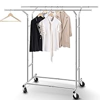 62 | Commercial Grade Clothing Garment Racks Heavy Duty Adjustable Collapsible Rolling Clothes Rack, Chrome Finish | ![]() |