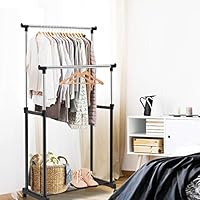 20 | Simple Trending Double Rod Clothing Garment Rack, Rolling Clothes Organizer on Wheels for Hanging Clothes, Chrome | ![]() |